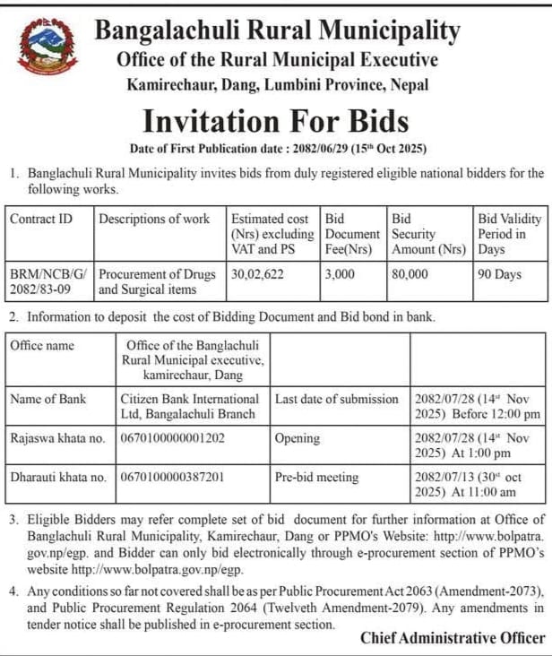 सार्वजनिक खरिद/बोलपत्र सूचना