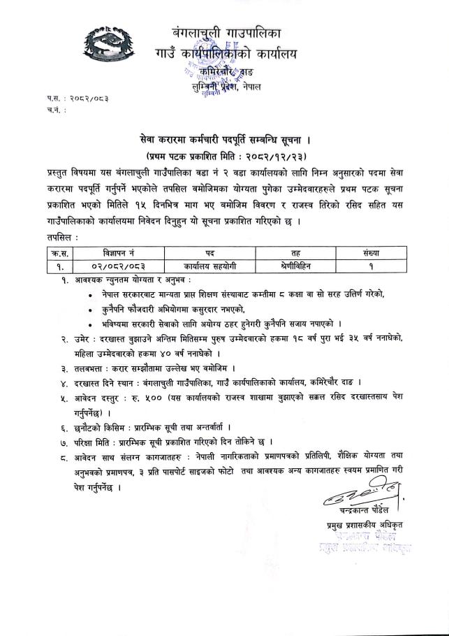 आ ब 2083/084 बेरोजगार व्यक्ति सूचीकरण सम्बन्धमा