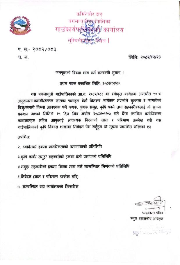 » फलफूलको विरुवा माग सम्बन्धि सूचना