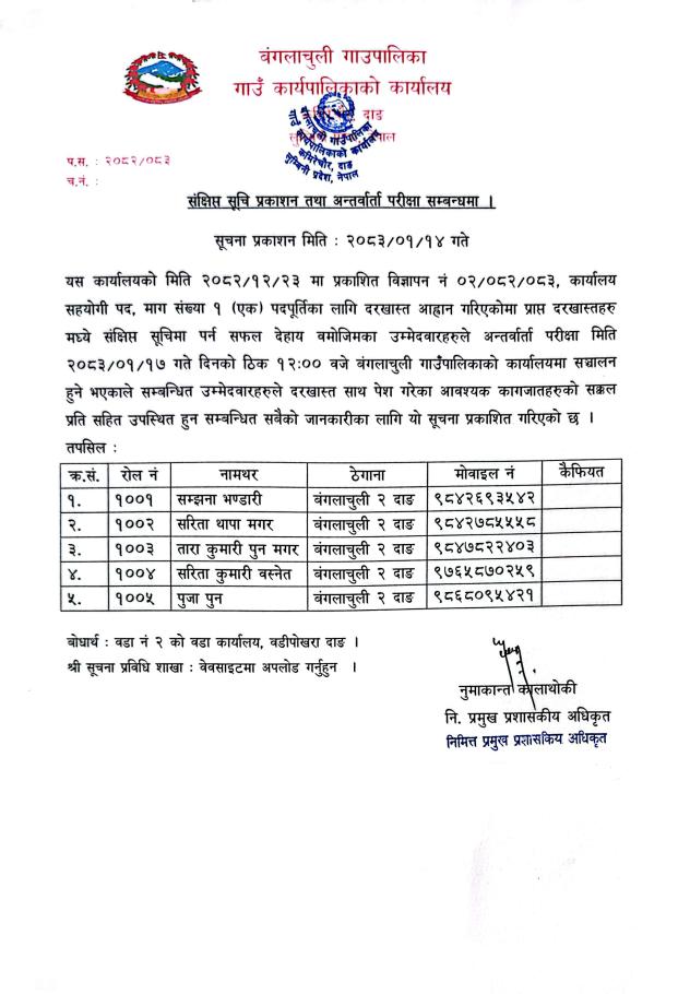 अन्तिम नतिजा प्रकाशन सम्बन्धमा।।।