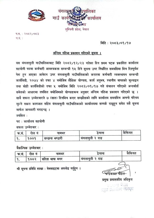 अन्तिम नतिजा प्रकाशन सम्बन्धमा।।।